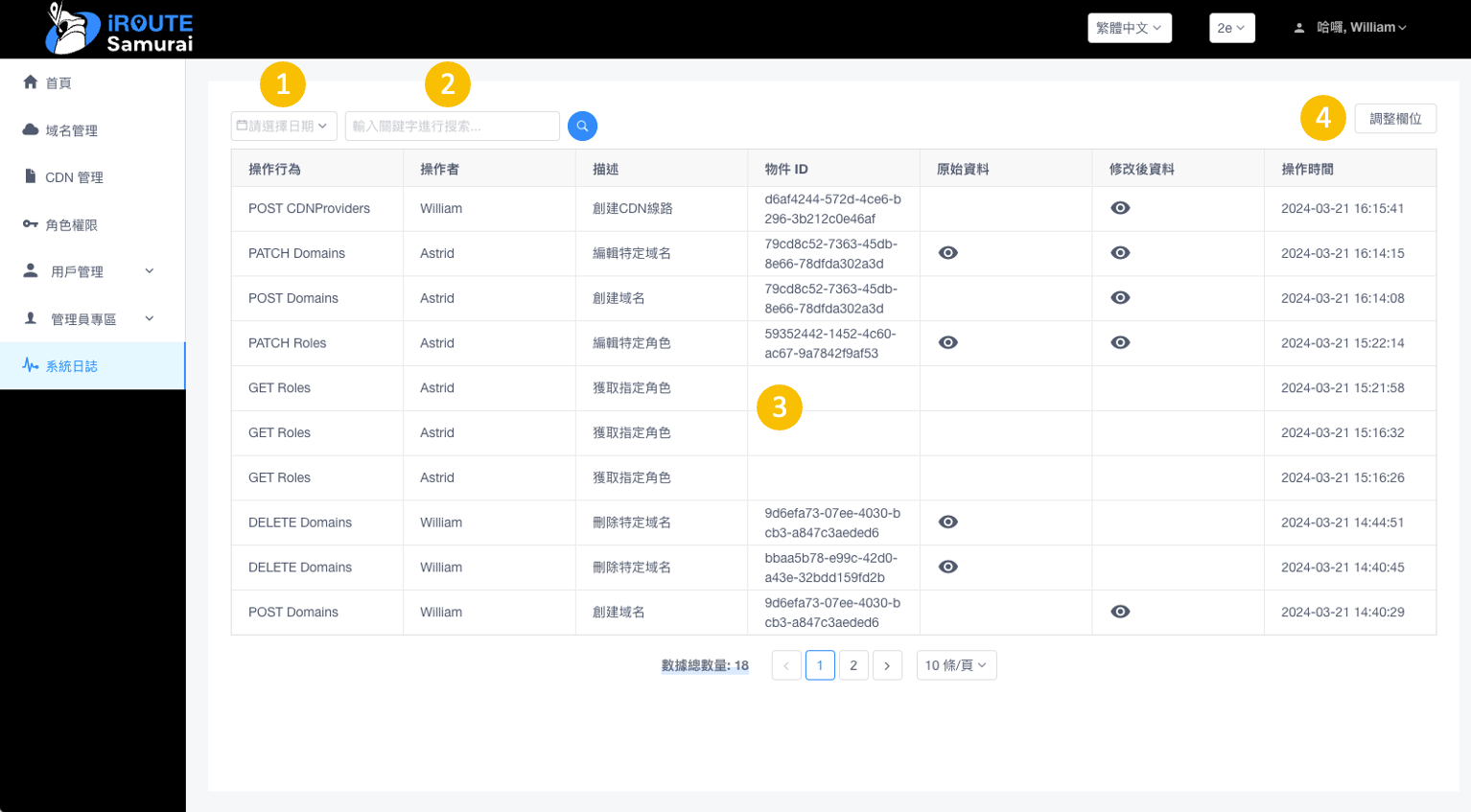 針對想要搜尋的log進行模糊搜尋,只要符合部分關鍵字即可,例如資料內有[cdn.example.com],搜尋 [example.com] 就可以搜尋到所需要的資訊。