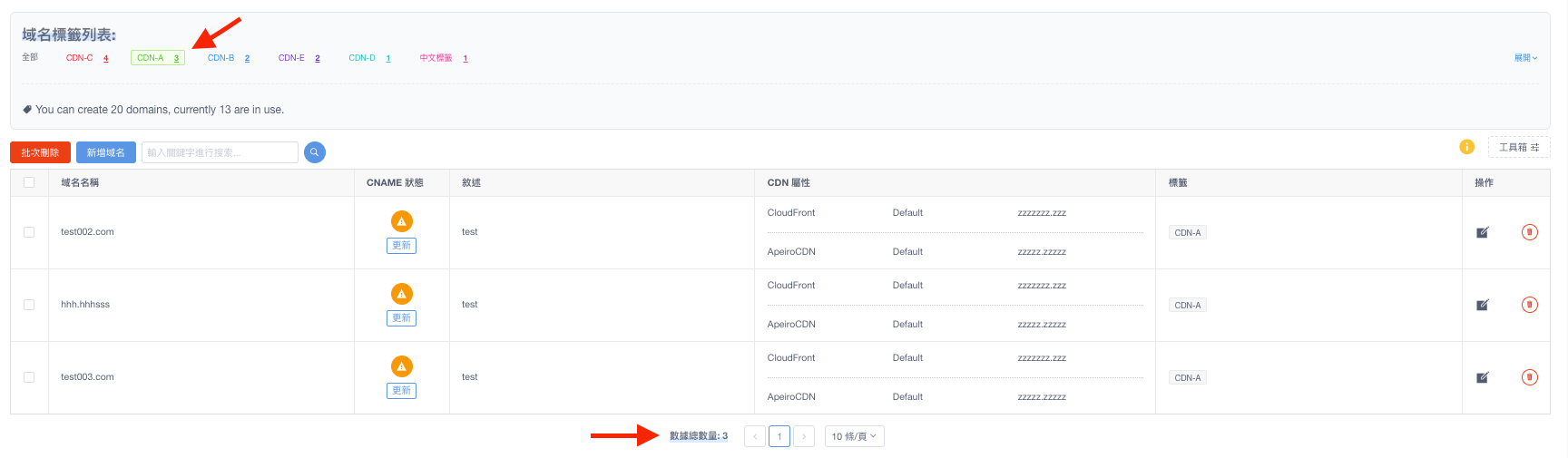3. 小工具說明 Last updated on Feb 7, 2024 ① 標籤 / Tag : 根據使用者的個人喜好進行分類,同時也可透過點擊標籤進行方便的篩選。當未做任何選擇時,Table Data將完整顯示所有內容點擊標籤可便捷進行單一篩選標籤同時支援多個篩選功能 Previous OpenAPI 文檔 Next 1. 新增管理員帳戶